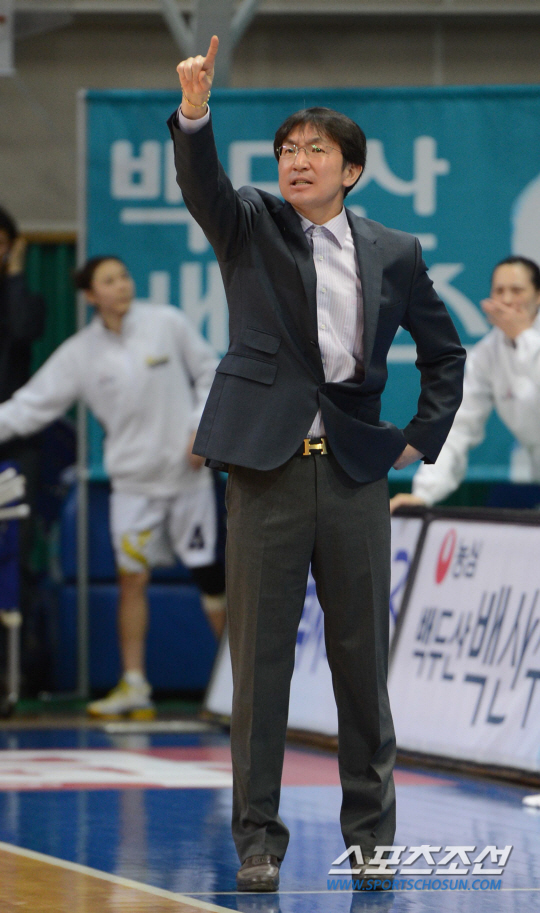 임달식 신한은행 감독은 웃지 않았다. 경기 전 손쉬운 경기가 예상됐지만 힘겨웠다. 막판까지 접전을 펼친 끝에 4점차로 승리했다. 30일 오후 안산 와동체육관에서 2013-2014 여자프로농구 KDB생명과 신한은행의 경기가 열렸다. 신한은행 임달식 감독이 선수들에게 작전 지시를 내리고 있다. 안산= 김경민 기자 kyungmin@sportschosun.com / 2013.12.30.
