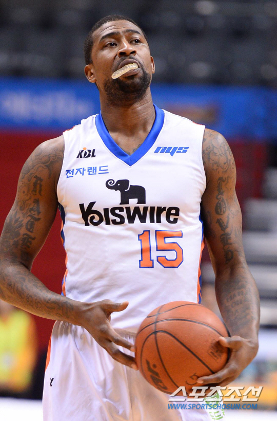 2013-2014 프로농구 고양오리온스와 인천전자랜드의 경기가 29일 고양실내체육관에서 열렸다. 전자랜드 포웰이 마우스피스를 씹으며 숨을 고르고 있다. 고양=최문영 기자 deer@sportschosun.com