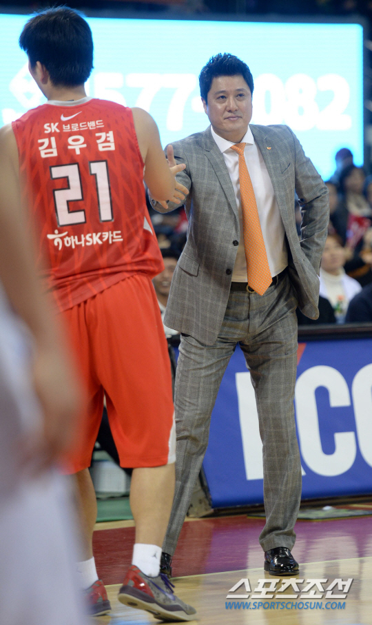 문경은 SK 나이츠 감독은 김우겸을 스타팅으로 내보냈다. 삼성 썬더스의 주득점은 이동준을 방어하기 위해서였다.