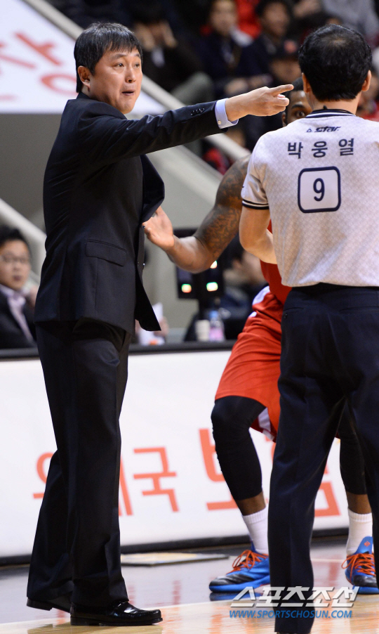 2013-2014 프로농구 안양인삼공사와 고양오리온스의 경기가 5일 안양실내체육관에서 열렸다. 인삼공사 이상범 감독이 심판의 루즈볼 파울 선언에 강하게 어필하고 있다. 안양=최문영 기자 deer@sportschosun.com