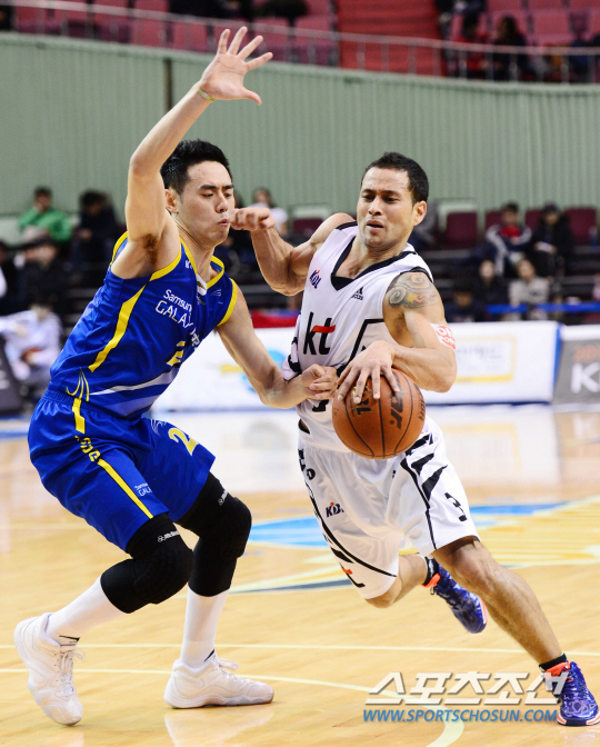 프로농구 서울삼성과 부산KT의 경기가 12일 잠실실내체육관에서 펼쳐 졌다. 부산KT 전태풍(오른쪽)이 서울삼성 이관희의 수비를 뚫고 드리블을 하고 있다. 잠실=조병관기자 rainmaker@sportschosun.com/2014.02.11/ |