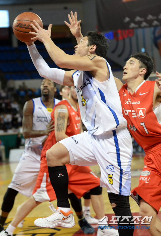 | 서울 SK와 서울 삼성의 2013-2014 프로농구 경기가 5일 잠실학생체육관에서 열렸다. 삼성 이정석이 SK 변기훈의 수비를 피해 골밑슛을 시도하고 있다. 잠실학생=허상욱 기자 wook@sportschosun.com/2014.03.05/ |