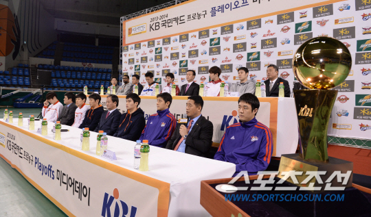 10일 오전 서울 잠실학생체육관에서 2013-2014 프로농구 플레이오프 미디어데이가 열렸다. '2013-2014 프로농구 플레이오프 미디어데이'에는 플레이오프에 진출한 6개 팀 감독 및 대표 선수 두 명이 참석해 우승을 위한 출사표와 각오를 밝힐 예정이며, KBL SNS를 통해 선정된 팬들의 질문에 답변하는 시간도 마련된다. 2013-2014 프로농구 플레이오프는 3월 12일(수) 6강 플레이오프 1차전(전자랜드와 KT)을 시작으로 최종 우승팀을 가린다. 미디어데이에서 오리온스 추일승 감독이 소감을 밝히고 있다. 잠실학생체= 김경민 기자 kyungmin@sportschosun.com