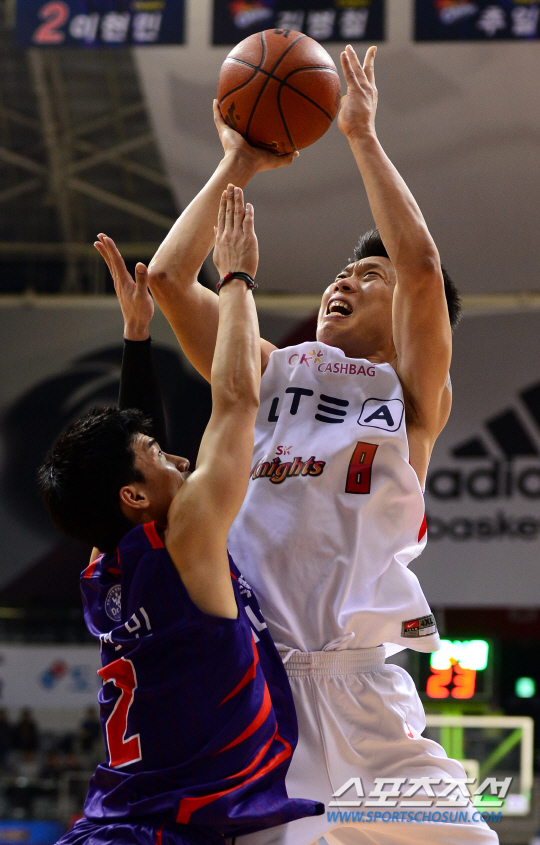 19일 고양체육관에서 프로농구 6강 PO 4차전 서울 SK와 고양 오리온스의 경기가 열렸다. SK가 시리즈 전적 2승 1패로 앞서 있다. SK 박상오가 오리온스 이현민의 수비를 앞에 두고 레이업슛을 시도하고 있다. 고양=송정헌 기자 songs@sportschosun.com