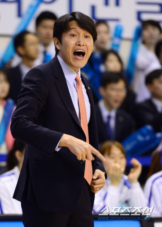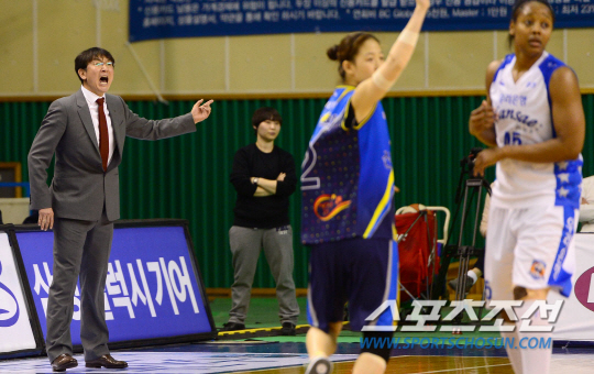 25일 춘천호반체육관에서 여자프로농구 챔피언결정전 1차전 우리은행과 신한은행의 경기가 열렸다. 우리은행 위성우 감독이 선수들에게 고함을 치며 작전을 전달하고 있다. 춘천=송정헌 기자 songs@sportschosun.com/2014.03.25