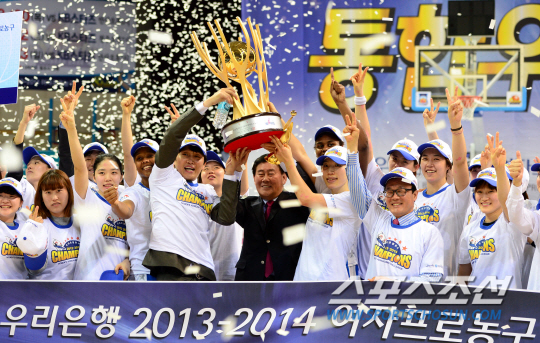 여자농구 우리은행 한새가 2년 연속 통합우승을 차지했다. 지난 2012~2013시즌엔 삼성생명을, 이번엔 신한은행을 챔피언결정전에서 격파했다. 일부에선 지난 시즌 첫 통합우승 때 우리은행의 행보를 좀더 지켜보자고 했다. 하지만 이번 2연속 통합 우승으로 우리은행은 명실공히 여자농구의 최강임을 증명해보였다.