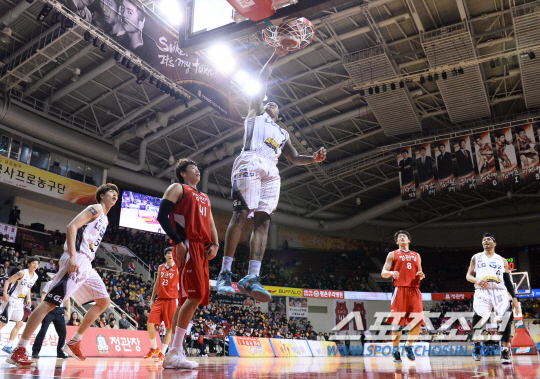 2013-2014 프로농구 안양인삼공사와 창원LG의 경기가 9일 안양실내체육관에서 열렸다. LG 제퍼슨이 호쾌한 덩크슛을 성공시키고 있다. 안양=최문영 기자 deer@sportschosun.com /2014.02.09/