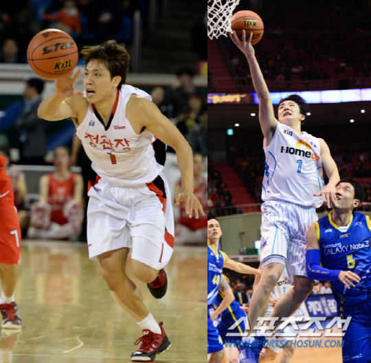 FA 김태술(왼쪽)이 사인앤 트레이드 형식으로 KCC 유니폼을 입게됐다. 강병현(오른쪽)과 장민국이 KGC에서 새롭게 뛰게 됐다. 스포츠조선DB