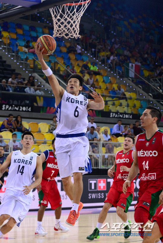유재학 감독이 이끄는 남자농구대표팀이 9월 5일(한국시간) 스페인 그란카나리아의 그란카나리아 아레나에서 2014 FIBA(국제농구연맹)농구월드컵 D조 조별예선 멕시코와 마지막 5차전 경기를 펼쳤다. 양동근이 멕시코 수비수를 제치며 레이업슛을 성공시키고 있다. <그란카나리아(스페인)=스포츠조선 송정헌 기자>