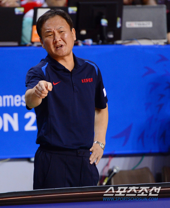24일 오후 경기도 화성시 화성종합경기장 타운실내체육관에서 2014 인천 아시안게임 몽골과 한국의 경기가 열렸다. 한국 유재학 감독이 선수들에게 지시를 내리고 있따. 화성= 김경민 기자 kyungmin@sportschosun.com / 2014.09.24.