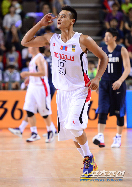 24일 오후 경기도 화성시 화성종합경기장 타운실내체육관에서 2014 인천 아시안게임 몽골과 한국의 경기가 열렸다. 3쿼터 3점슛을 성공시킨 몽고 텅알라그가 환호하고 있다. 화성= 김경민 기자 kyungmin@sportschosun.com / 2014.09.24.