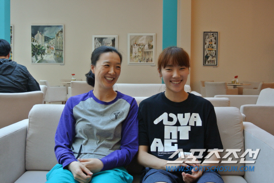 체코에서 전지훈련중인 여자농구 대표팀의 최고참 이미선(35)과 막내 박혜진(24)이 마주 앉았다. 14년 전 대표팀 막내였던 이미선은 지금의 박혜진을 보며 과거 자신의 모습을 떠올렸다. 카를로비바리(체코)=이명노 기자 nirvana@sportschosun.com