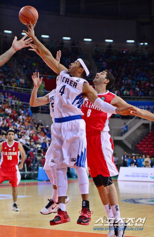 강한 압박 수비가 통했다. 적극적인 대인방어에 이란 공격이 꽉 막혔다. 양동근은 상대 가드 캄라니를, 양희종은 상대 에이스 포워드 바라미에 딱 달라붙었다. 아시아 최강 센터 하다디(2m18)는 오세근(2m)과 김종규(2m7)가 협력 수비로 막았다. 바라미는 이란의 주득점원 답게 혼자서 12득점을 올렸다. 하지만 이란 다른 선수들의 득점이 부진했다.