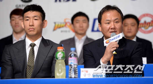 2014-2015 프로농구 미디어데이가 6일 서울 소공동 더플라자호텔 그랜드볼룸에서 열렸다. 원주동부 김주성이 올시즌에 임하는 각오를 전하고 있다. 2014-2015 프로농구는 오는 10월 11일 지난 시즌 챔피언 울산 모비스와 준우승팀 창원 LG의 공식 개막전을 시작으로 6개월간의 대장정에 돌입한다. 이번 시즌에는 이전 시즌과 달리 월요일 경기가 신설됐다. 허상욱 기자 wook@sportschosun.com/2014.10.06/