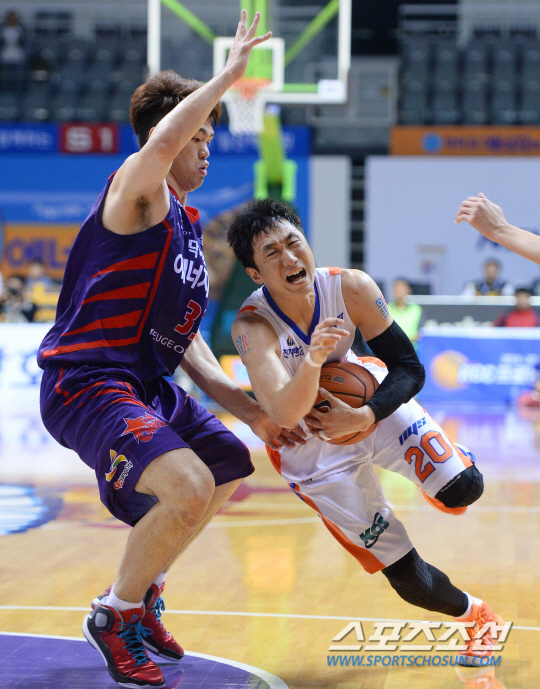 2014-2015 프로농구 고양오리온스와 인천전자랜드의 경기가 23일 고양체육관에서 열렸다. 전자랜드 정영삼이 오리온스 이승현의 수비사이로 돌파를 시도하고 있다. 고양=최문영 기자 deer@sportschosun.com /2014.10.23/