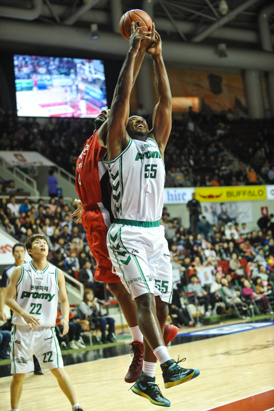 동부가 1일 안양 실내체육관에서 벌어진 2014~2015시즌 KCC 남자농구 1라운드 마지막 경기에서 KGC를 65대56으로 제압했다.