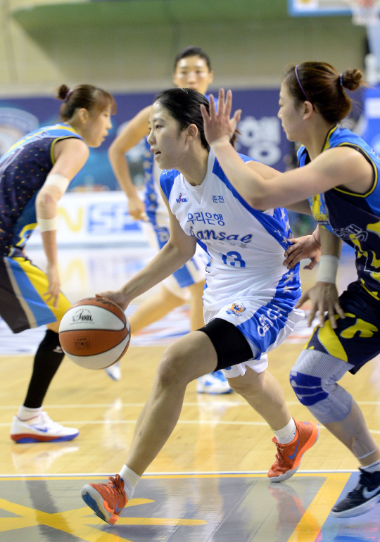 우리은행의 존재감은 여자농구판에서 절대적이다. 우리은행은 지난 시즌까지 두시즌 연속 통합 챔피언이 됐다. 아직 신한은행이 주름잡았던 시절에 비하면 갈길이 멀다. 하지만 우리은행의 현재 전력과 미래를 종합적으로 예상해보면 신한은행의 전성기를 뒤?아갈 가능성이 높다. 이번 2014~2015시즌 KB국민은행 여자농구에서도 시즌 초반이지만 우리은행은 예상대로 가장 강력한 우승 후보다운 모습을 보여주기 시작했다.