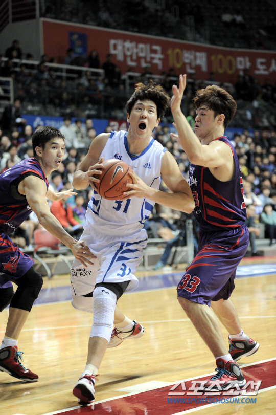 파워가 뛰어난 이동준은 매치업 상대 허일영을 데리고 골밑에서 포스트 업을 여러차례 시도했다. 이 과정에서 삼성의 공격작업은 인상적이었다. 기계적인 이동준의 포스트 업이 아닌, 자유투 부근(하이 포스트)에 공을 투입, 내외곽을 함께 노렸다. 31-32로 뒤진 상황에서 라이온스의 자유투 2득점, 차재영의 3점포가 터졌다. 삼성의 정교한 공격작업에 오리온스의 수비가 부분적으로 무너지는 모습. 1분17초를 남기고 인상적인 공격이 나왔다. 하이 포스트에서 공을 잡은 김준일이 골밑에 날카롭게 파고드는 차재영에게 연결, 쉽게 골밑슛을 성공시켰다. 삼성이 시즌 초반과 달라진 모습. 팀이 강해진 상징적인 장면을 보는 듯 했다. 결국 38-32로 전반을 리드한 채 끝냈다. 이승현은 5득점, 김준일은 무득점이었지만, 3개의 어시스트를 기록했다.