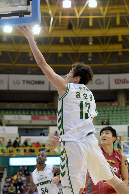 동부의 수비 조직력은 촘촘하기로 정평이 나 있다. 골밑에 김주성 데이비드 사이먼(또는 앤서니 리처드슨) 그리고 그 앞에 윤호영이 서면 상대가 골밑으로 파고 들기가 여간 부담스럽지 않다. 결국 상대는 골밑이 안 되면 외곽에서 슛을 던지는 빈도가 높아질 수밖에 없다. 그런데 동부는 상대 외곽슛의 정확도를 떨어트리는 장치가 마련돼 있다. 발이 빠르고 움직임이 날렵한 루키 허 웅과 두경민 박지현을 번갈아 출전시키면서 상대 가드나 슈터를 졸졸 따라다니게 만들었다.