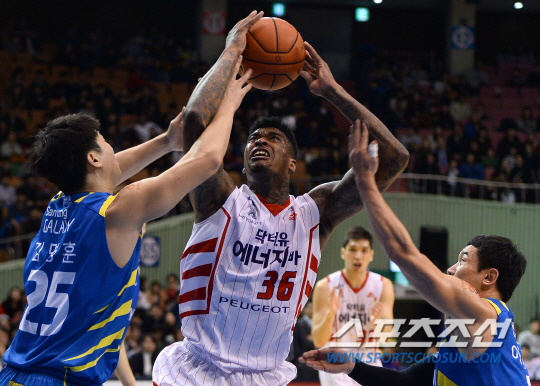 11월 30일 잠실실내체육관에서 프로농구 서울삼성과 고양오리온스의 경기가 열렸다. 삼성 김명훈, 이정석(오른쪽)이 오리온스 가르시아의 골밑슛을 막아서고 있다. 잠실=송정헌 기자 songs@sportschosun.com/2014.11.30 |