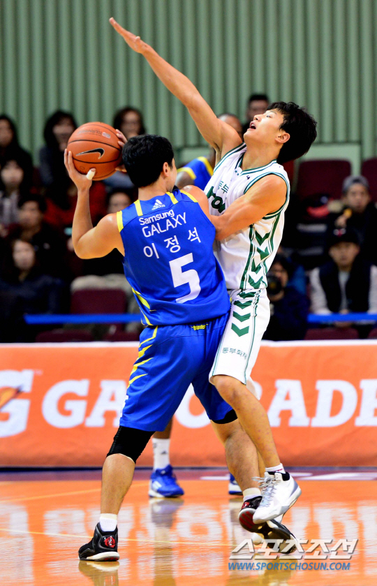 6일 오후 서울 잠실실내체육관에서 2014-2015 프로농구 동부와 삼성의 경기가 열렸다. 동부 허웅(오른쪽)이 삼성 이정석을 밀착 마크하고 있다. 잠실실내체=김경민 기자 kyungmin@sportschosun.com / 2014.11.06. |