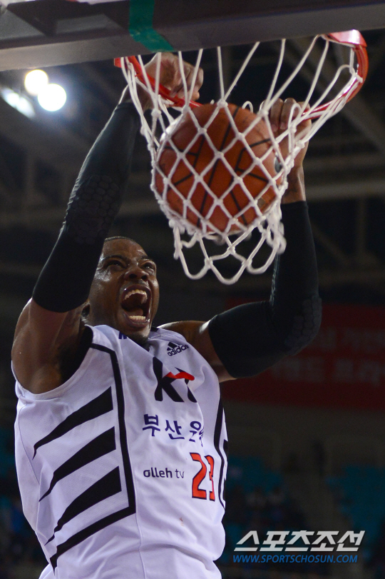28일 인천 삼산체육관에서 프로농구 인천전자랜드와 부산KT의 경기가 열렸다. KT 로드가 호쾌한 덩크슛을 성공시키고 있다. 인천=송정헌 기자 songs@sportschosun.com/2014.12.28