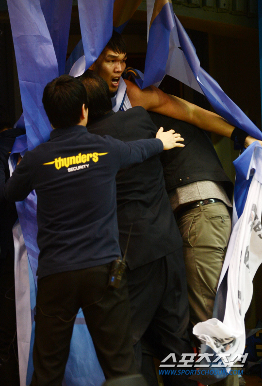 하승진은 당시 경기 도중 상대팀 선수의 팔에 맞아 코뼈가 내려앉는 부상을 입고 라커룸으로 이동하다 야유하는 관중과 충돌 직전까지 갔다.