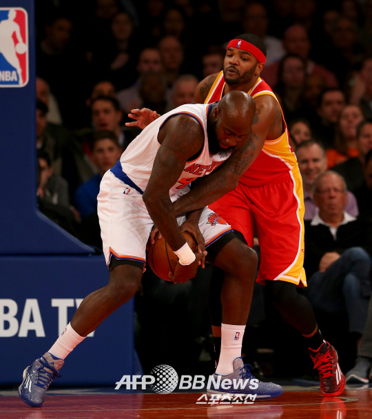| 뉴욕 닉스 퀸시 에이시가 휴스턴 로키츠의 조시 스미스를 제치려다 파울을 유도하고 있다. 뉴욕은 96대120으로 패하며 14연패의 늪에 빠졌다. ⓒAFPBBNews = News1 |