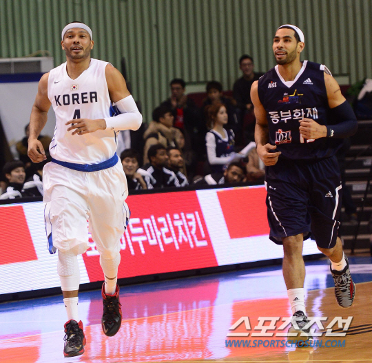 2014-2015 프로농구 올스타전 KBL 선발팀과 국가대표팀의 경기가 10일 서울 잠실실내체육관에서 열렸다. 국가대표 문태종과 KBL 선발 문태영이 나란히 뛰고 있다. 잠실=정재근 기자 cjg@sportschosun.com/2015.01.10/