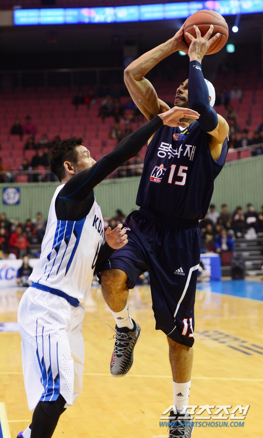 2014-2015 프로농구 올스타전 KBL 선발팀과 국가대표팀의 경기가 10일 서울 잠실실내체육관에서 열렸다. KBL 선발 문태영이 국가대표 양동근의 수비를 제치며 점프슛을 하고 있다. 잠실=정재근 기자 cjg@sportschosun.com/2015.01.10/