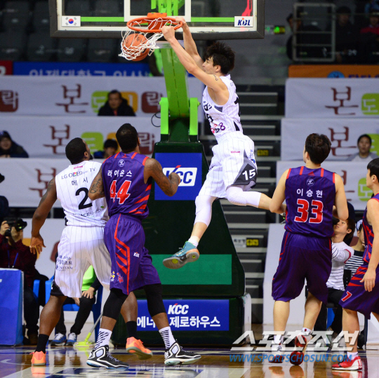 20일 오후 경기도 고양체육관에서 2014-2015 프로농구 LG와 오리온스의 경기가 열렸다. LG 김종규가 덩크슛을 성공시키고 있다. 고양=김경민 기자 kyungmin@sportschosun.com / 2015.01.20.