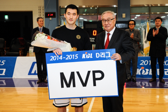| 왼쪽부터 변기훈과 김영기 KBL 총재. 사진제공=KBL |