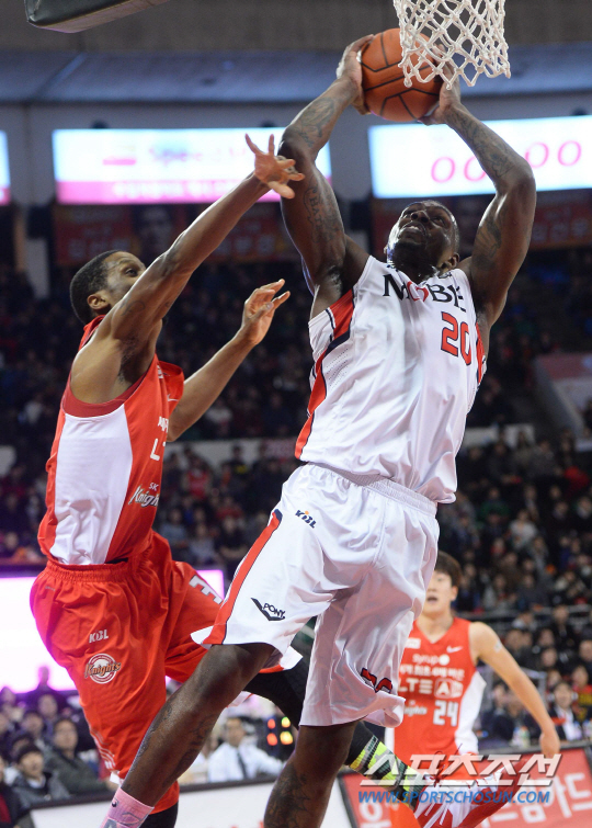 2014-2015 프로농구 서울SK와 울산모비스의 경기가 22일 잠실학생체육관에서 열렸다 모비스 라틀리프가 SK의 헤인즈의 수비사이로 레이업 슛을 시도하고 있다. 잠실=최문영 기자 deer@sportschosun.com /2015.01.22/