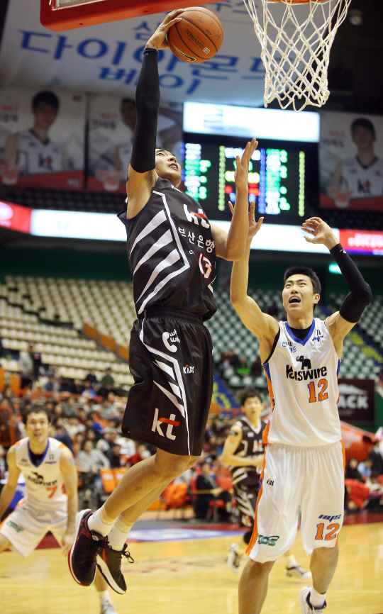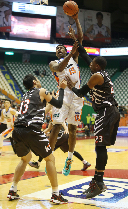 전자랜드가 29일 부산 사직체육관에서 벌어진 2014~2015시즌 KCC 남자농구 kt전에서 67대61로 승리했다.
