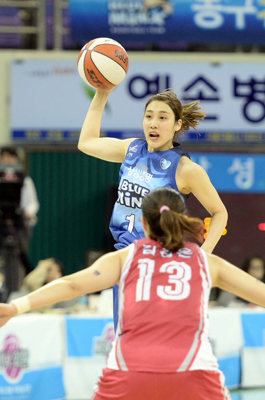 어느 프로스포츠든 팀과 선수의 궁합은 중요하다. 이적이 계기가 돼 기량을 만개하는 케이스는 수도 없이 많다. 삼성 블루밍스의 가드 박하나(25)는 이런 면에서 참 운이 좋은 선수다. FA(자유계약선수)로 하나외환에서 삼성으로 이적하고, 올 시즌 '환골탈태'했다.