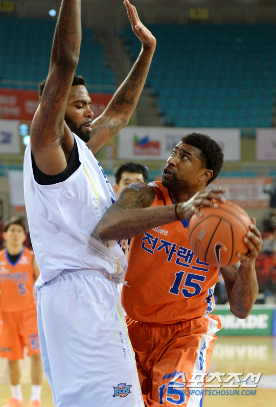순위는 KCC에 앞서던 전자랜드지만 사실 걱정이 많은 경기였다. 이번 시즌 첫 맞대결에서 승리를 거뒀을 뿐, 내리 3번을 졌다. 경기 전 만난 유도훈 감독은 "KCC 때문에 잠을 못잤다. 뭐가 문제인지 찾으려 애썼다"고 했다. 결국은 KCC 외국인 선수 윌커슨이 핵심이다. 내-외곽을 휘저으며 뛰어난 득점 능력을 과시하는 윌커슨. 약점은 상대 외국인 선수의 높이가 좋을 때이다. 키가 크고 힘이 좋은 선수에 힘을 못쓴다. 하지만 전자랜드 포웰은 자신과 비슷한 포워드. 한결 플레이가 수월하다. 유도훈 감독은 "윌커슨에게 너무 많은 점수를 줬다"고 했고 KCC 허 재 감독도 "윌커슨이 전자랜드전에서는 힘을 낸다. 포웰을 상대로 조금 더 자신감이 있어 보인다"고 했다. 윌커슨은 이날 경기 혼자 24점을 몰아쳤다. 리바운드도 10개를 거둬내 더블더블을 완성했다.