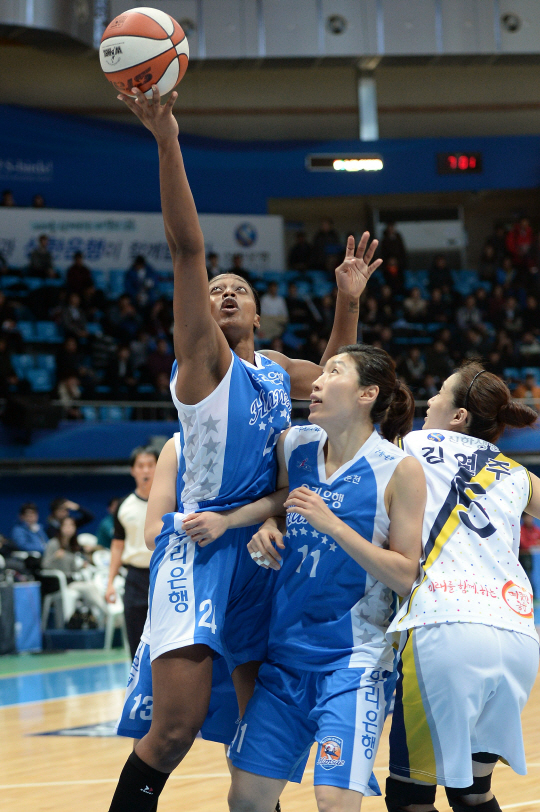 2위를 유지하던 신한은행은 KDB생명과의 트레이드로 국가대표 센터 신정자까지 영입했다. 곽주영-신정자-하은주의 '빅3'를 갖추게 되면서 순식간에 전력을 끌어올렸다. 신정자 영입 후 첫 경기, 신한은행은 지난 1일 2차 연장 끝에 우리은행을 83대79로 제압했다. '신정자 효과'는 크지 않았지만, 주전 포인트가드 최윤아가 빠진 상태에서도 충분한 경쟁력이 있음을 증명했다.