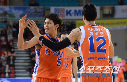 2014-2015 프로농구 인천 전자랜드와 서울SK의 경기가 11일 인천삼산체육관에서 열렸다. 전자랜드 정병국이 팀의 73대67 승리를 확정짓고 환호하고 있다. 인천=최문영 기자 deer@sportschosun.com/2015.02.11/ |