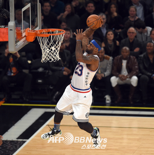2014~2015 NBA 올스타전 동부 컨퍼런스와 서부 컨퍼런스의 경기가 16일(한국시간) 뉴욕 매디슨 스퀘어 가든에서 펼쳐 졌다. 동부 컨퍼런스 르브론 제임스(클리블랜드)가 호쾌한 덩크를 꽂아 넣고 있다.