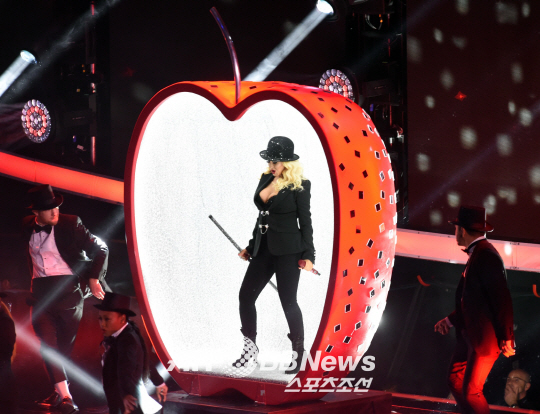 2014~2015 NBA 올스타전 동부 컨퍼런스와 서부 컨퍼런스의 경기가 16일(한국시간) 뉴욕 매디슨 스퀘어 가든에서 펼쳐 졌다. 팝 스타 크리스티나 아길레라가 올스타전 프리게임쇼에 나와 화려한 공연을 펼치고 있다.