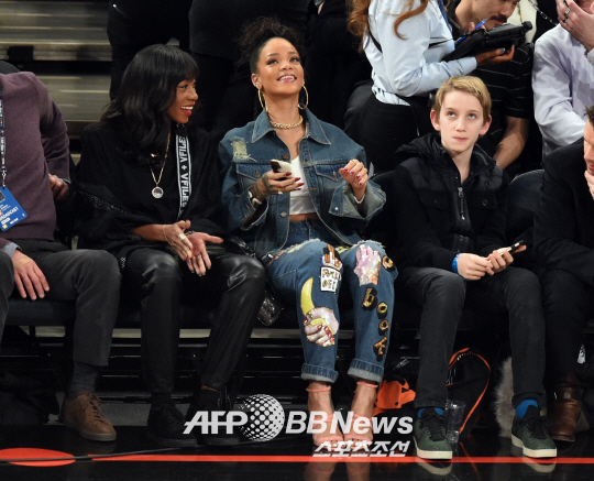 2014~2015 NBA 올스타전 동부 컨퍼런스와 서부 컨퍼런스의 경기가 16일(한국시간) 뉴욕 매디슨 스퀘어 가든에서 펼쳐 졌다. 팝 스타 리한나(가운데)가 경기장을 찾아 올스타전을 관람하고 있다.