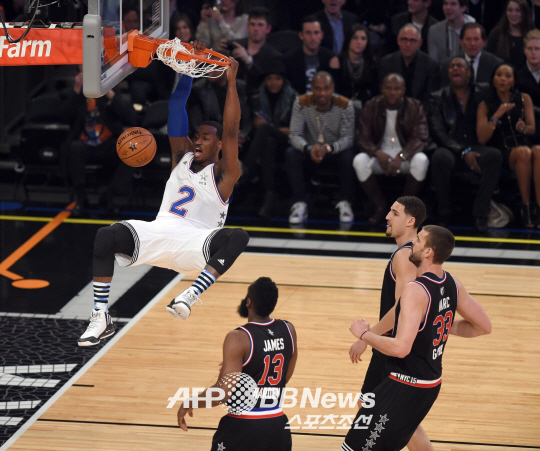 2014~2015 NBA 올스타전 동부 컨퍼런스와 서부 컨퍼런스의 경기가 16일(한국시간) 뉴욕 매디슨 스퀘어 가든에서 펼쳐 졌다. 동부 컨퍼런스 존 월(워싱턴 위저즈)이 호쾌한 덩크를 꽂아 넣고 있다.