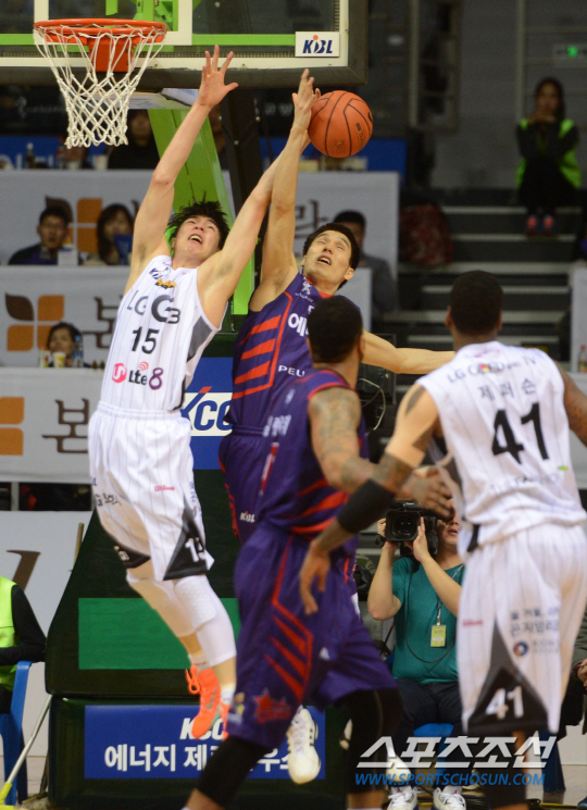 고양 오리온스와 창원 LG의 2014-2015 프로농구 경기가 15일 고양실내체육관에서 열렸다. 오리온스 장재석이 LG 김종규에 앞서 리바운드를 잡아내고 있다. 고양=허상욱 기자 wook@sportschosun.com/2015.02.15/ |