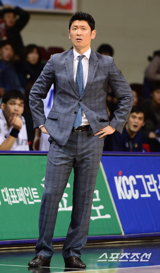 22일 안양실내체육관에서 프로농구 안양 KGC와 전주 KCC의 경기가 열렸다. KCC가 KGC에 76대71로 패하며 10연패를 기록했다. 4쿼터 막판 경기를 지켜보고 있는 추승균 대행. 안양=송정헌 기자 songs@sportschosun.com/2015.02.22 |
