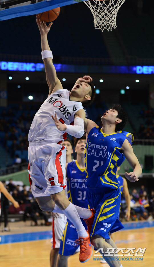 13일 오후 서울 잠실 실내체육관에서 2014-2015 프로농구 삼성과 모비스의 경기가 열렸다. 모비스 양동근(왼쪽)이 삼성 이호현의 마크를 넘어 슛을 시도하고 있다. 잠실실내체=김경민 기자 kyungmin@sportschosun.com / 2015.01.13. |