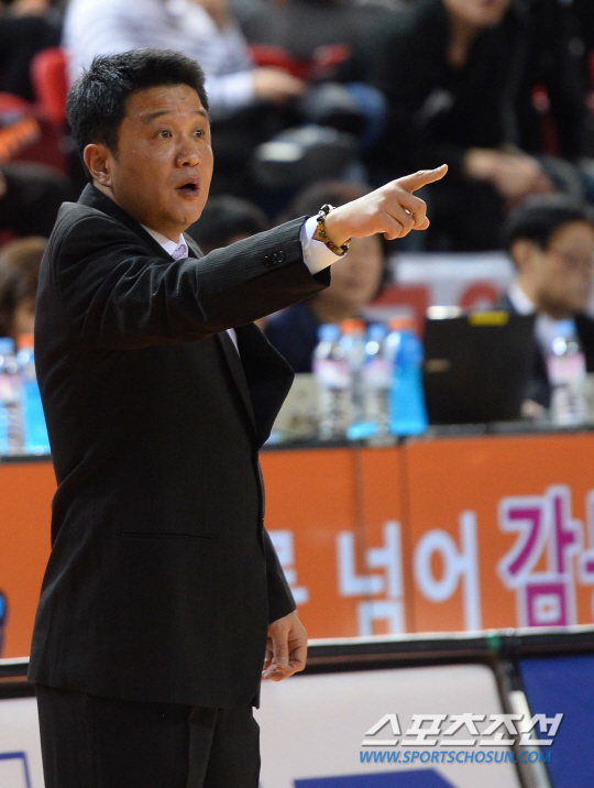 2014-2015 프로농구 인천 전자랜드와 서울SK의 경기가 11일 인천삼산체육관에서 열렸다. 박빙의 승부가 이어지는 가운데 전자랜드 유도훈 감독이 역동적인 포즈르 작전을 지시하고 있다. 인천=최문영 기자 deer@sportschosun.com/2015.02.11/