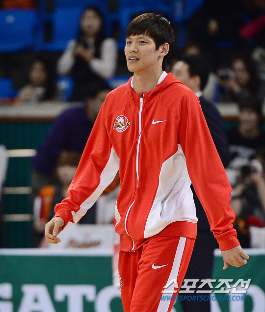 29일 오후 서울 잠실학생체육관에서 2014-2015 프로농구 삼성과 SK의 경기가 열렸다. 부상으로 결장 중인SK 김선형이 하프타임때 팬 경품 추첨을 위해 코트에 나서고 있다. 잠실학생체=김경민 기자 kyungmin@sportschosun.com / 2015.01.29. |