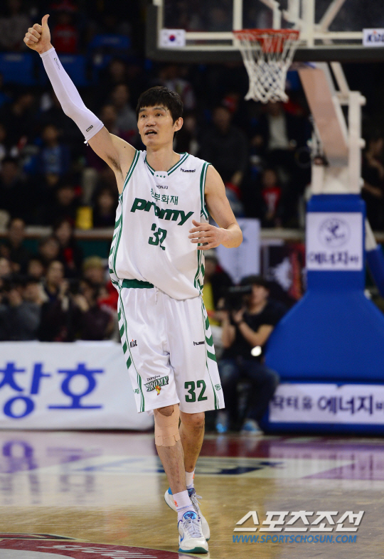 8일 잠실학생체육관에서 프로농구 서울 SK와 원주 동부의 경기가 열렸다. 올 시즌 두 팀의 상대전적은 2승 2패로 팽팽히 맞서고 있다. 4쿼터 막판 김주성이 승리를 확정짓는 득점에 성공하고 엄지손가락을 들어보이고 있다. 잠실=송정헌 기자 songs@sportschosun.com