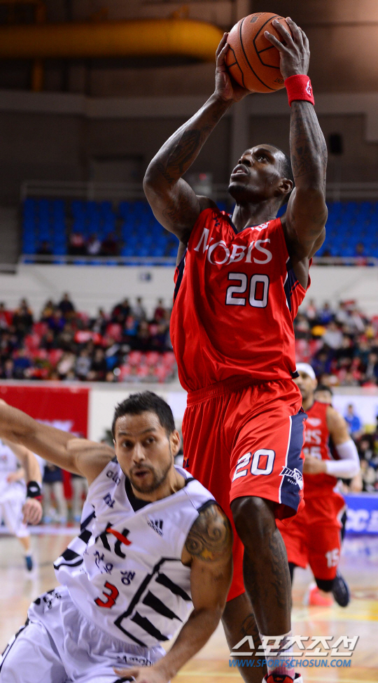 5일 오후 울산 동천체육관에서 2014-2015 프로농구 부산 KT와 울산 모비스의 경기가 열렸다. 모비스 라틀리프가 KT 전태풍의 마크를 넘어 슛을 시도하고 있다. 울산=김경민 기자 kyungmin@sportschosun.com / 2015.03.05.