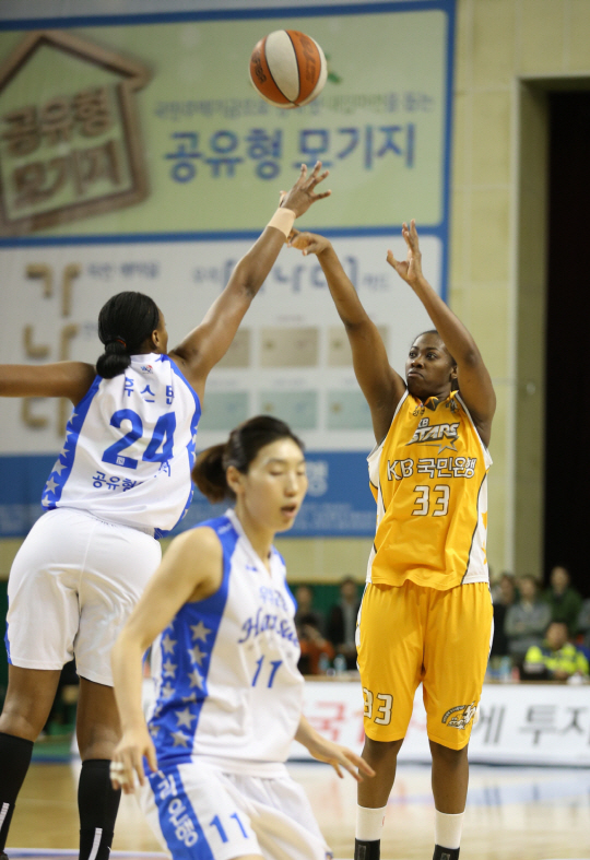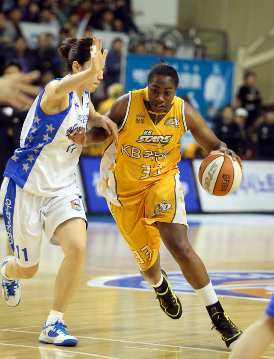 챔프전 1차전에서 맹활약한 KB스타즈 쉐키나 스트릭렌. 사진제공=WKBL